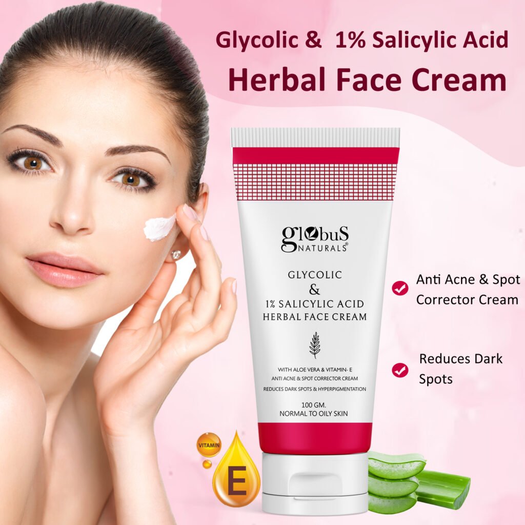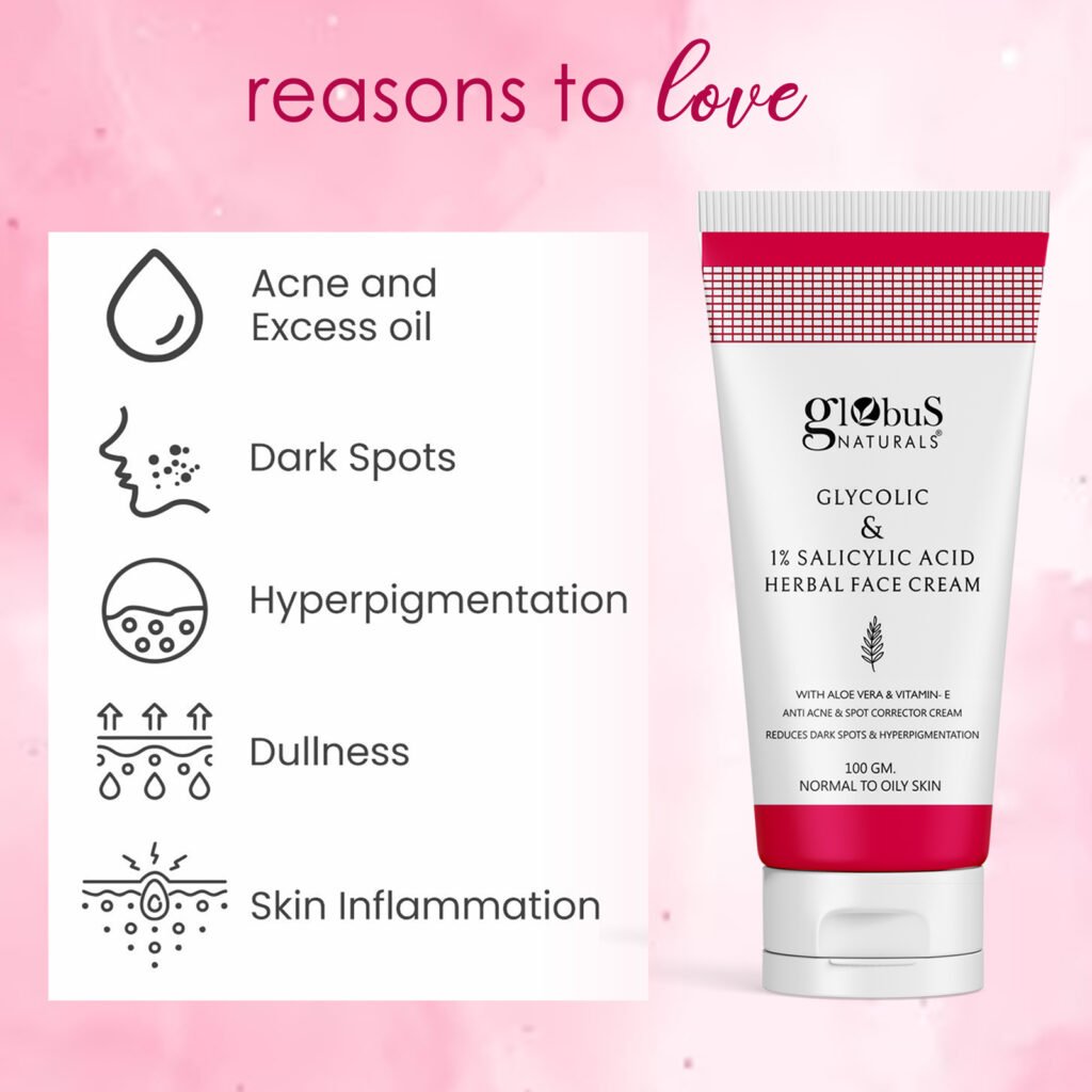 👉 Globus Naturals Glycolic + 1% Salicylic Acid Herbal Anti Acne Cream